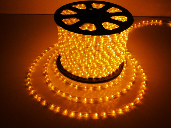 Светодиодный Дюралайт Ø13 мм Желтый 220В, 36 LED/м, Свечение 180°, IP65, Бухта 100м
