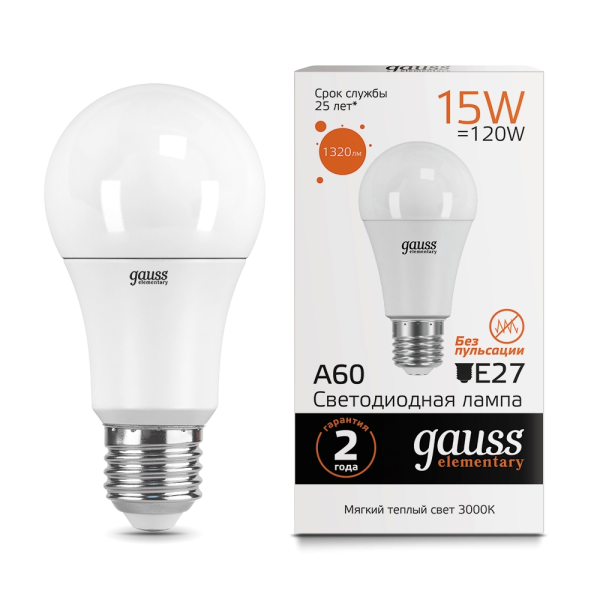 Elementary A60 15W 1320lm 3000K E27 LED 1/10/50 23215 лампа