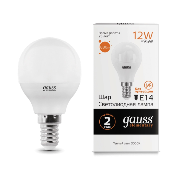 Gauss Elementary 12W 880lm 3000K E14 LED 1/10/100 53112 лампа