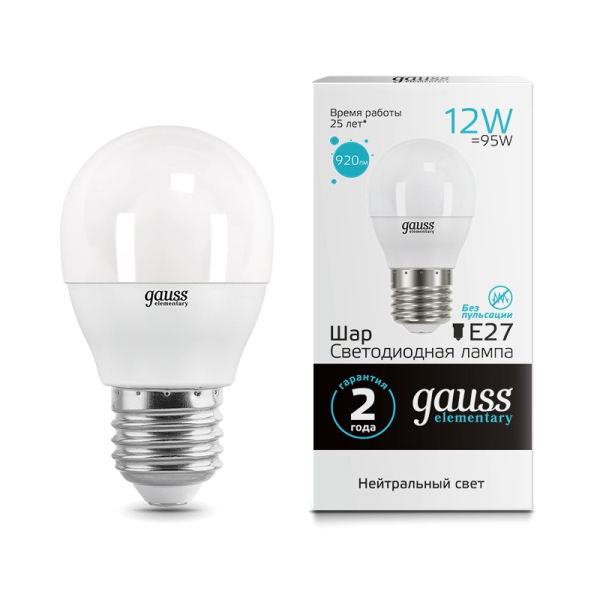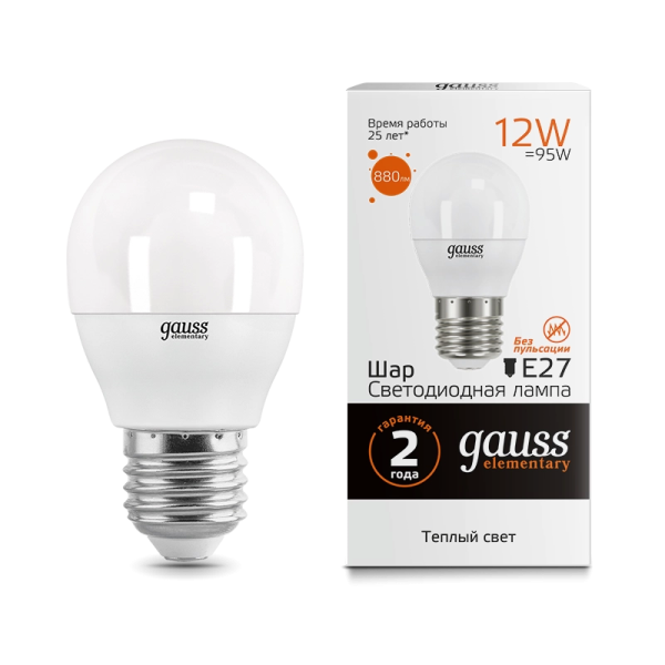 Gauss Elementary 12W 880lm 3000K E27 LED 1/10/100 53212 лампа