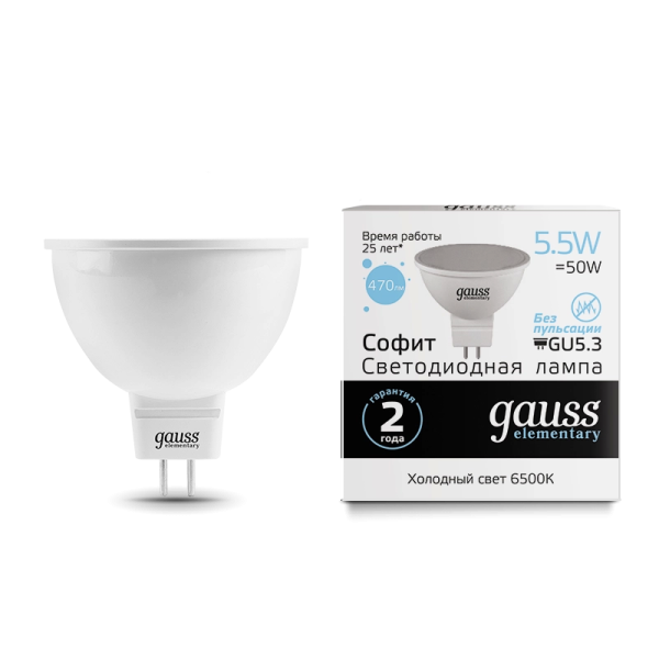 Gauss Elementary MR16 5.5W 470lm 6500 GU5.3 LED 1/10/100 13536 лампа