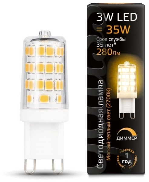 Gauss G9 AC150-265V 3W 230lm 2700K LED 1/20/200 107709103 лампа