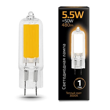 Gauss G4 AC220-240V 5.5W 480lm 3000K LED 1/10/200 107807105 лампа