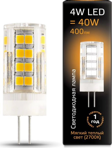 Gauss G4 AC185-265V 4W 400lm 2700K LED 1/10/200 107307104 лампа