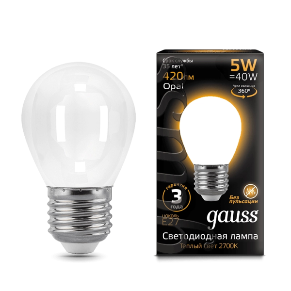 Gauss Filament 5W 420lm 2700 E27 milky LED 1/10/50 105202105 лампа