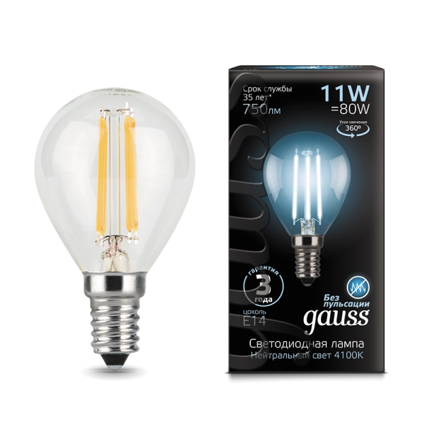 Gauss Filament 11W 750lm 4100 E14 LED 1/10/50 105801211 лампа