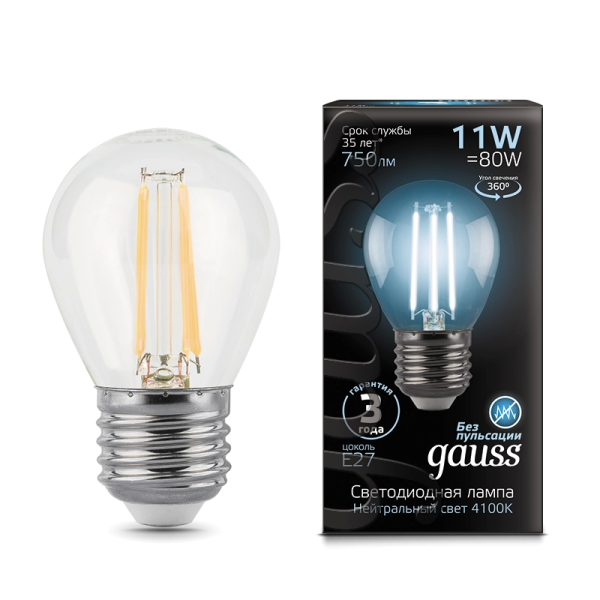 Gauss Filament 11W 750lm 4100 E27 LED 1/10/50 105802211 лампа