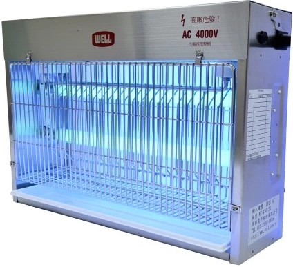 • клеевые. Предназначены для помещений с высокими требования к пожарной безопасности. Принцип работы простой: ультрафиолетовая лампа привлекает насекомых, которые прилипают на пластину с клеевой основой. Пластина сменная, ее замена осуществляется 1 раз в 1,5-2 месяца. Особую популярность приобрела клеевая промышленная ловушка Well WE-813-SB60, предназначенная для помещений площадью до 180 кв. м;