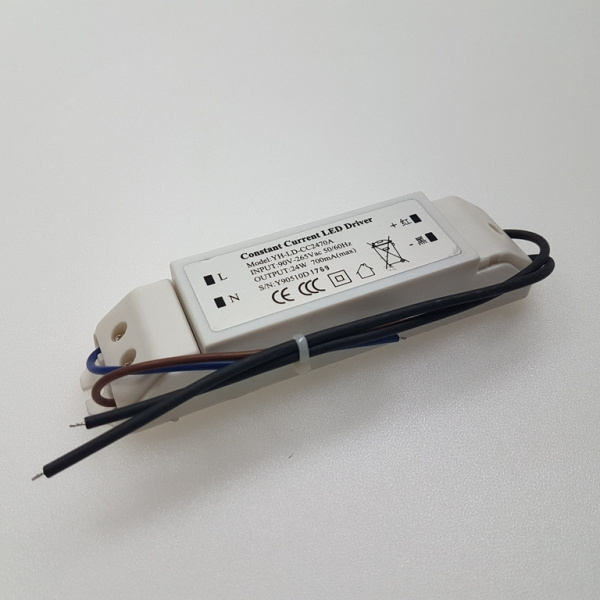Трансформатор 20W для Силиконовых Нитей 24В, до 400 LED, Провод Черный Каучук, IP65