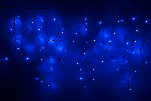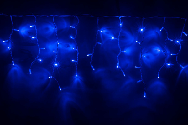 Гирлянда Бахрома с Колпачком 3,2 x 0,9 м Синяя с Мерцанием Белого Диода 220В, 168 LED, Провод Прозрачный ПВХ, IP65