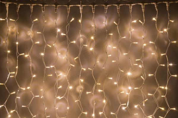 Гирлянда Занавес Облегченный 2 x 3 м Экстра Тепло-Белый 220В, 600 LED, Провод Прозрачный ПВХ, IP54