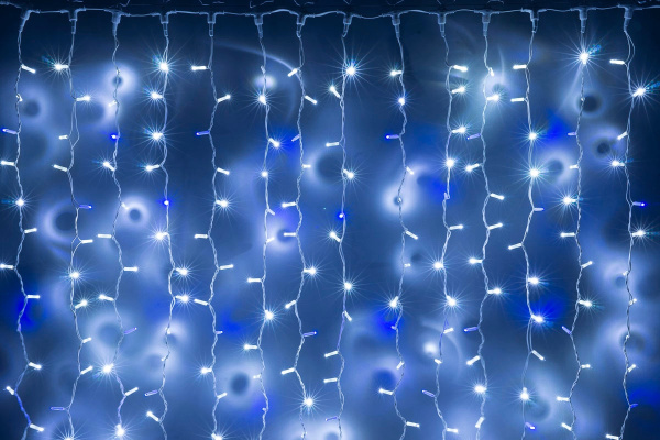 Гирлянда Занавес Облегченный 2 x 3 м Синий 220В, 600 LED, Провод Прозрачный ПВХ, IP54