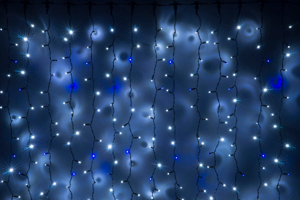 Гирлянда Занавес Облегченный 2 x 3 м Синий 220В, 600 LED, Провод Прозрачный ПВХ, IP54