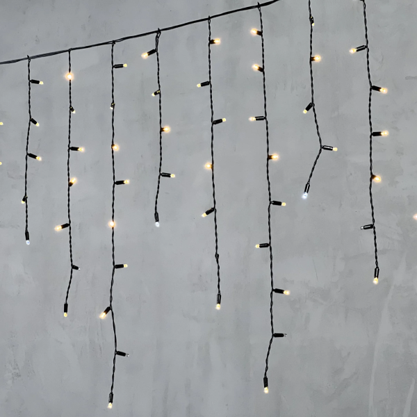 Гирлянда Бахрома с Колпачком 3,2 x 0,9 м Тепло-Белая с Мерцанием Белого Диода 220В, 168 LED, Провод Черный ПВХ, IP65