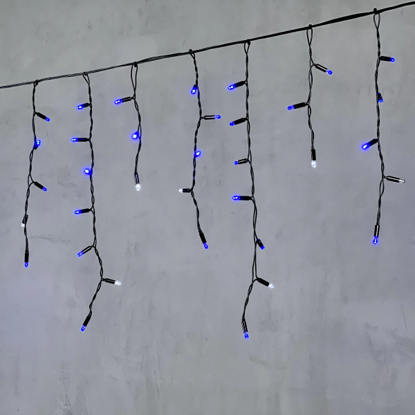 Гирлянда Бахрома с Колпачком 3,1 x 0,5 м Синяя с Мерцанием Белого Диода 220В, 120 LED, Провод Черный ПВХ, IP65