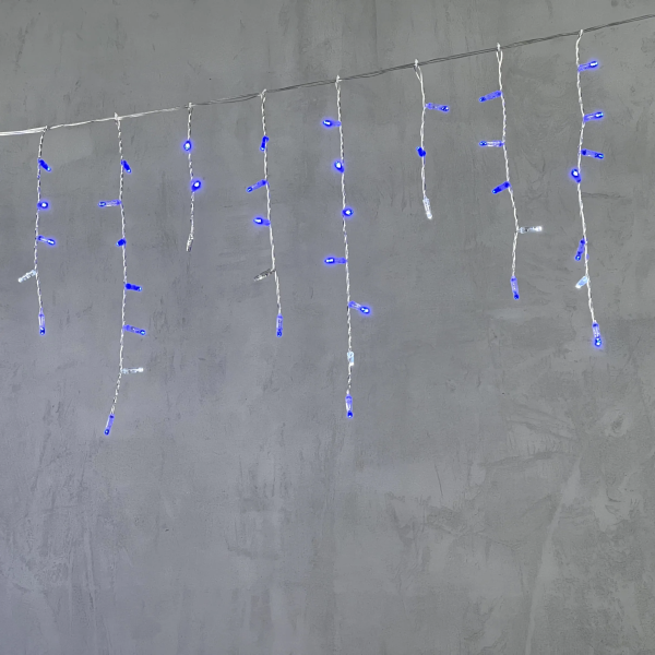 Гирлянда Бахрома 4,9 x 0,5 м Синяя с Мерцанием Белого Диода 220В, 240 LED, Провод Прозрачный ПВХ, IP54