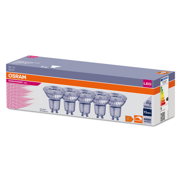 4.5W/940 (=50W) DIM GU10 230V 36° PARATHOM PAR16 (Экопак 5шт) - Светодиодная лампа OSRAM
