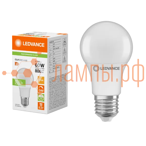 Лампа светодиодная 8.8W/2700K (=60W) DIM E27 PERFORMANCE CLASS Груша