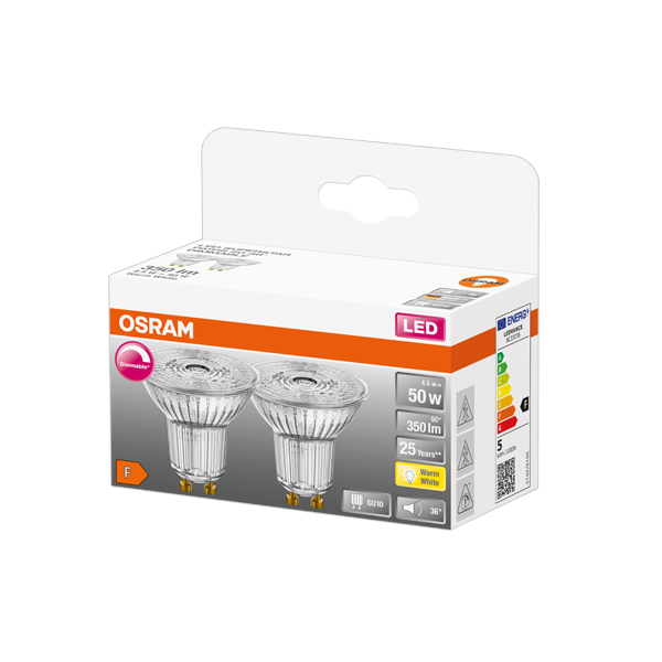 4.5W/927 (=50W) DIM GU10 230V 36° 350lm LED Star (Экопак 2шт) - Светодиодная лампа OSRAM