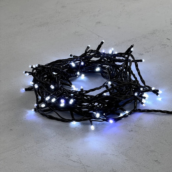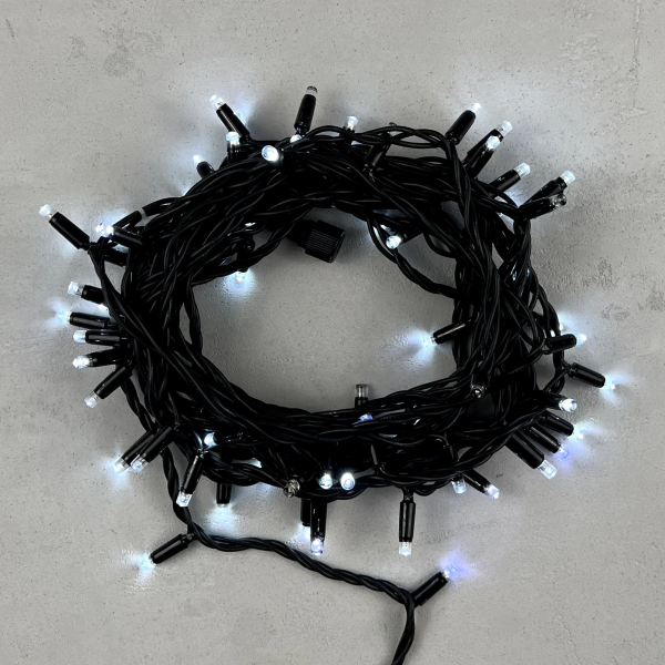 Гирлянда Нить с Контроллером 10м Белая 220В, 100 LED, Провод Черный ПВХ, IP20