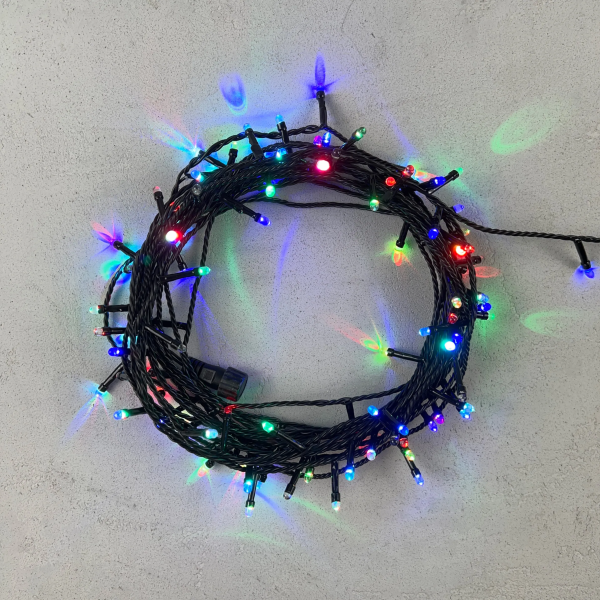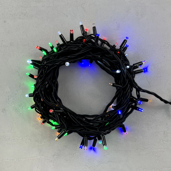 Гирлянда «Шарики» 10м Разноцветная 220В, Диаметр Шарика 23мм, 100 LED, Провод Черный ПВХ, IP54