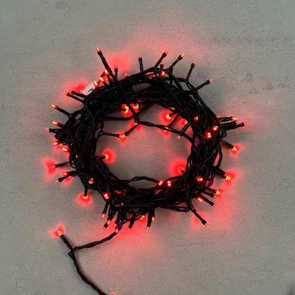 Гирлянда Нить 10м Красная 24В, 100 LED, Провод Черный ПВХ, IP54