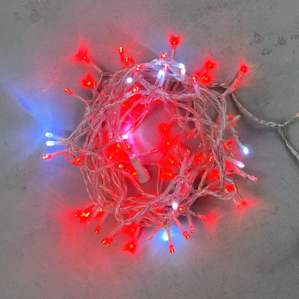 Гирлянда Нить 10м Красная с Мерцанием Белого Диода 220В, 100 LED, Провод Прозрачный ПВХ, IP54
