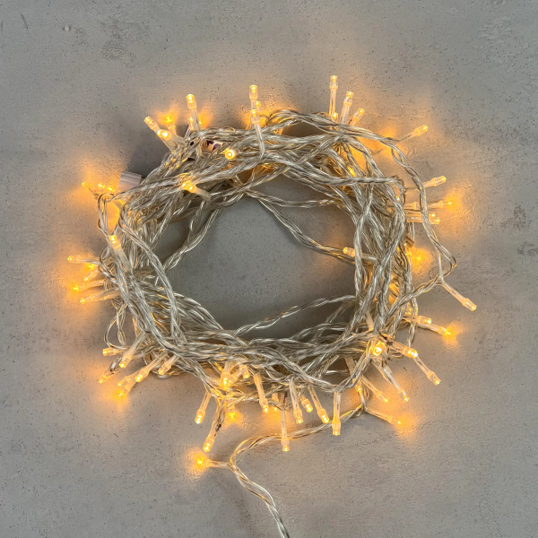 Гирлянда Нить 10м Экстра Тепло-Белая 24В, 100 LED, Провод Прозрачный ПВХ, IP54
