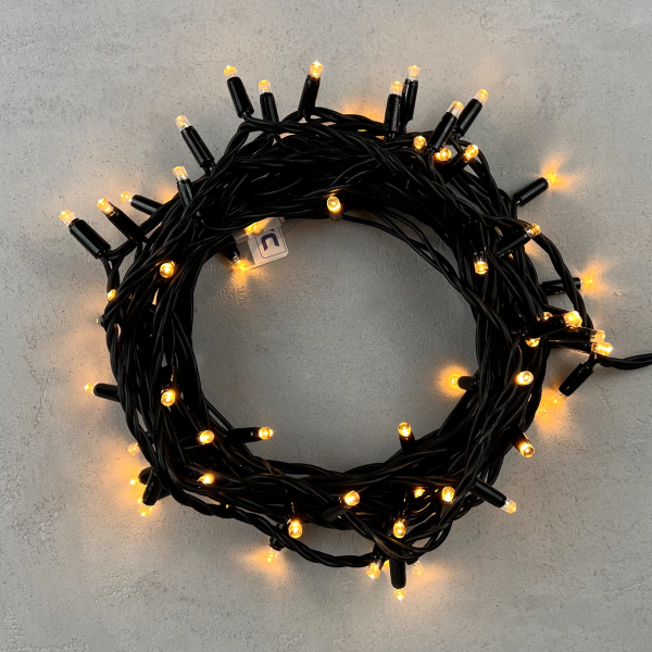 Гирлянда Нить 10м Экстра Тепло-Белая 24В, 100 LED, Провод Черный ПВХ, IP54
