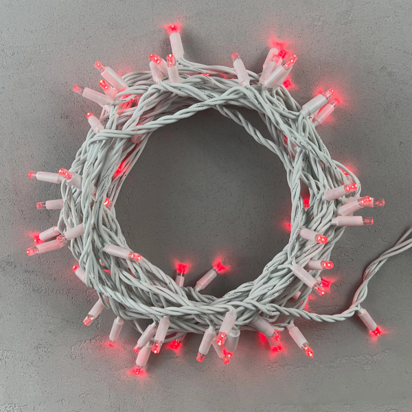 Гирлянда Нить 10м Красная 24В, 75 LED, Провод Белый Каучук, IP65