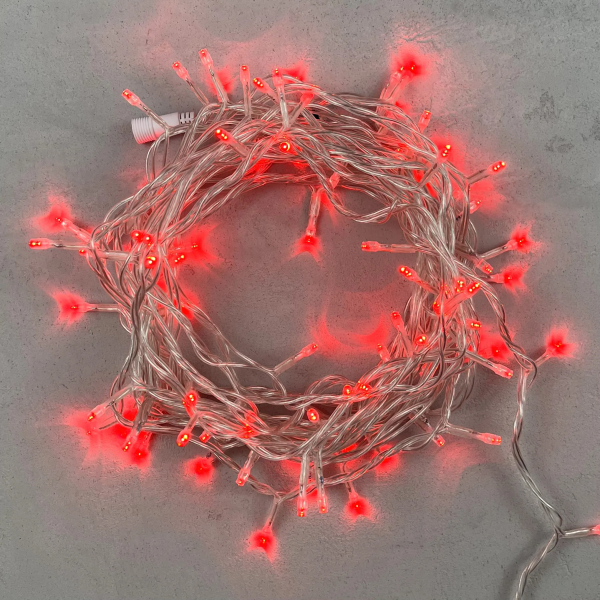 Гирлянда Нить 10м Красная 24В, 100 LED, Провод Прозрачный ПВХ, IP54